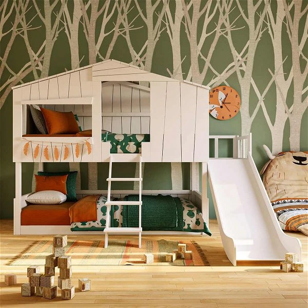 Dazu lässt sich das Artkid Haus-Etagenbett mit eigenen Ideen toll dekorieren, mit Lichterketten, Kissen, Vorhängen, Kuscheltieren… Ihre Kinder werden begeistert sein.