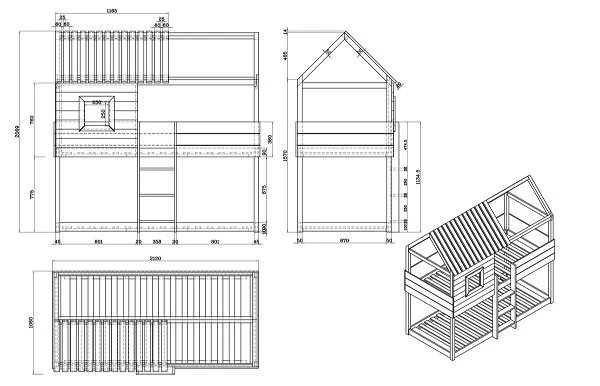 Maße des Artkid Roxy Hausbett: