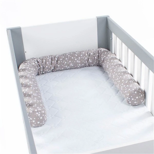 Die babybay Nestchenschlange ist vielseitig einsetzbar und kann nicht nur für das babybay Beistellbett genutzt werden, sondern auch im Kinderbett oder Laufstall. Zusätzlich kann es aufgerollt auch ideal als Sitzkissen genutzt werden. Es schützt Ihr Baby vor den harten Gitterstäben im babybay und bietet zugleich zuverlässigen Schutz vor Zugluft und bietet somit eine ruhige Schlafatmosphäre. Die weiche Oberfläche aus Baumwolle sorgt für ein angenehm weiches Gefühl auf der Haut.