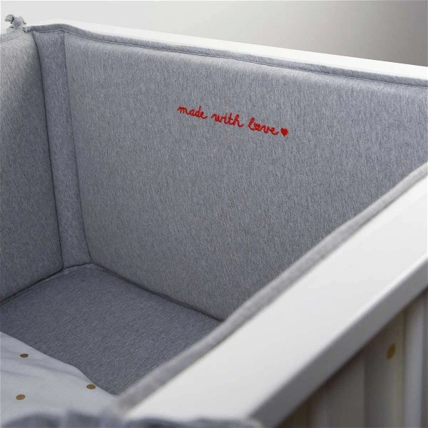 Das Childhome Bettnest ist ein weicher Bettkopfschutz und schützt Ihr Baby vor den harten Seiten des Bettes. Das Babynest wird einfach mit den Bändern am Bett befestigt und kann beidseitig verwendet werden.