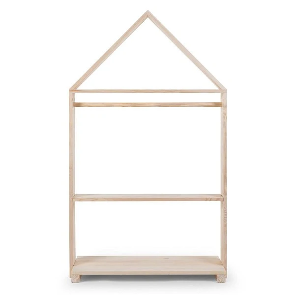 Das Childwood Lagerregal hat die Form eines Hauses und kann auch mit den mitgelieferten Rädern ausgestattet werden. Mit den Rädern lässt sich das Regal leicht bewegen und bietet Ihnen Flexibilität bei der Inneneinrichtung, zwei der Räder sind mit einer Bremse versehen. An der Kleiderstangen lassen sich problemlos einige Kleidungsstücke Ihres Kindes aufhängen und auf den 3 Regalbrettern lassen sich allerhand Sachen aufbewahren.