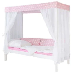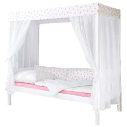 Ticaa Himmelbett Stern Rosa Kiefer Weiß Inkl. Bettkasten & Tüll-Textilien – 90 X 200 Cm