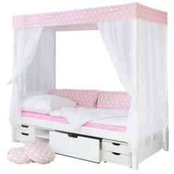 Ticaa Himmelbett Stern Rosa Kiefer Weiß Inkl. 5 Schubkästen & Tüll-Textilien – 90 X 200 Cm