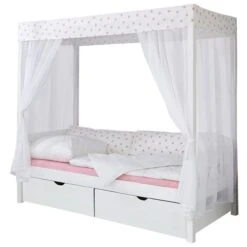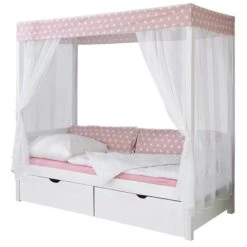 Ticaa Himmelbett Stern Rosa Kiefer Weiß Inkl. 2 Schubkästen & Tüll-Textilien – 90 X 200 Cm