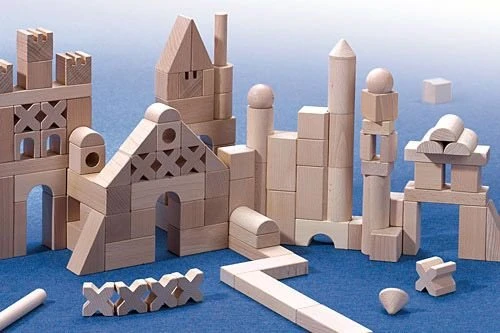 Bauen mit System und Fantasie. Hier entwickeln sich Kinder vom ersten Bauen bis zum riesigen Bauwerk. Statische Gesetze werden spielerisch erfasst und es wird das räumliche Denken gefördert. Formen entdecken und gestalten mit Bausteinen aus unbehandeltem Buchenholz.