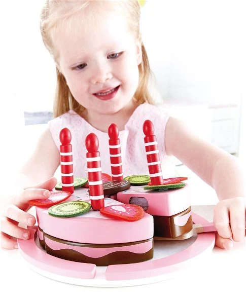 Feiere Geburtstag. Erst die Kerzen ausblasen und dann den leckeren Geburtstagskuchen mit Schokolade und Erdbeere genießen.