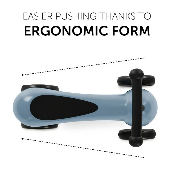 Die Sitzfläche ist weich gepolstert und bietet höchsten Komfort beim Fahren, während rutschfeste Griffe für Sicherheit beim rasanten Navigieren sorgen. Der niedrige Schwerpunkt des Rutschers macht das Auto kippsicher und die beidseitige Lenkereinschlagsbegrenzung erleichtert dem Kleinkind das Steuern in die richtige Richtung.