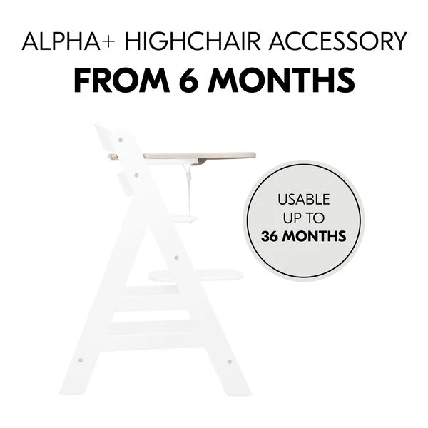 Im Kinderstuhl mit Aufsteck-Tablett sitzt dein Kind sicher und stabil, da du den Tisch mit Schrittgurt und 5-Punkt-Gurt nutzen kannst. Das großzügig geschnittene Tablett bietet viel Platz für Teller, Becher und Tassen zum Essen sowie für kleine Spielsachen. In Wohnzimmer, Kinderzimmer, Küche oder Bad – mit dem Alpha+ sitzt dein Kind im Holzhochstuhl immer auf Augenhöhe bei dir. Dein Kind kann den Stuhl nach euren individuellen Bedürfnissen nutzen. Kombinierst du das Tablett mit Sitzverkleinerer und Sitzkissen, ermöglichst du deinem Kind zusätzlichen Komfort.