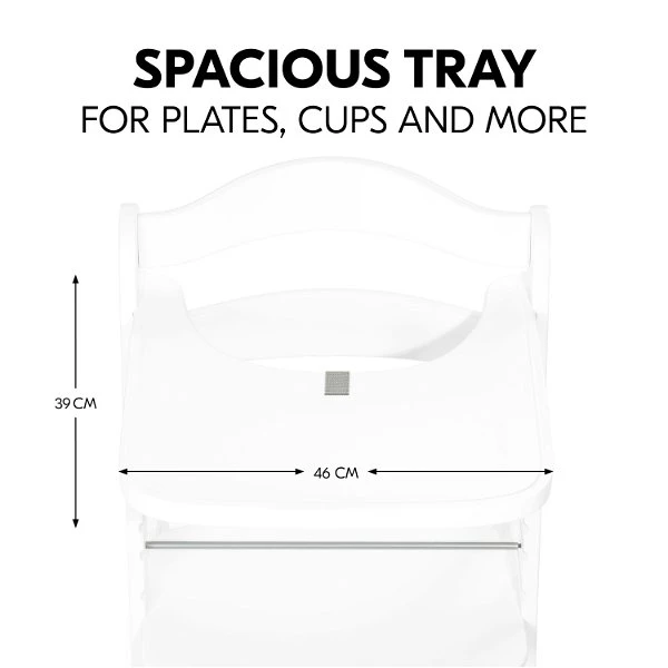 Dank robustem und widerstandsfähigem Material ist das Tablett am Kinderhochstuhl lange nutzbar. Der erhöhte Rand verhindert, dass Spielzeug einfach herunterfällt oder ausgeschüttete Getränke überlaufen. Zum Reinigen wischst du die glatte Oberfläche einfach mit einem Tuch und herkömmlichen Reinigungsmitteln sauber.