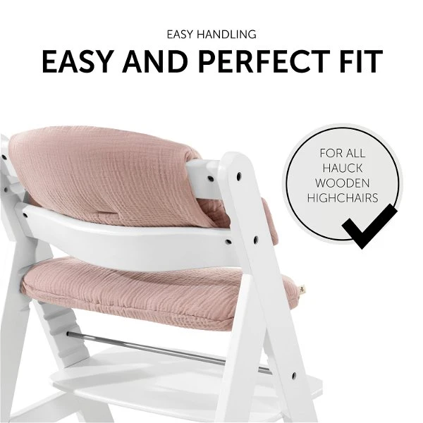 Das Design der Hochstuhlauflage ist für hauck Holzhochstühle entworfen worden. Die Auflage ist passgenau und wird durch Druckknöpfe einfach und schnell befestigt. Das Highchair Pad ist mit dem Alpha Tray Tisch kompatibel – so können der separat erhältliche Tisch und die weich gepolsterte Auflage am Hochstuhl befestigt werden.