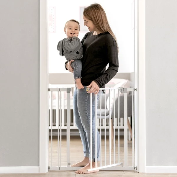 Das Kinderschutzgitter Open N Stop erhalten Sie inklusive 21 cm Verlängerung. So kann es flexibel für Treppen oder Türen mit einer Breite von 96 cm – 101 cm verwendet werden.