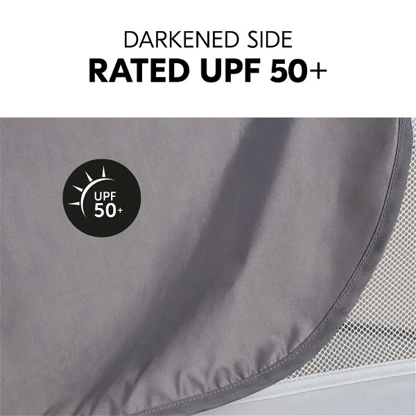 Das Travel Bed Canopy ist ein praktischer Alltagshelfer für Reisen und schützt Ihr Kind effektiv vor Sonneneinstrahlung und Insekten. Circa 2/3 des Verdecks sind aus einem abgedunkelten Stoff, der einen UV-Schutz von 50+ bietet. Bei Bedarf lässt sich die Abdunklung einfach aufrollen und fixieren, sodass der integrierte Insektenschutz voll zur Geltung kommt. Das Netz sorgt für eine gute Luftzirkulation und einen erholsamen Schlaf Ihres Kindes.