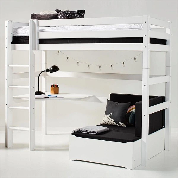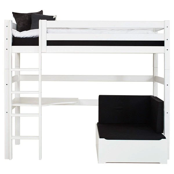 Hoppekids Hochbett ECO Luxury 90×200 cm, gerade Leiter & Tischplatte & Lounge-Ecke