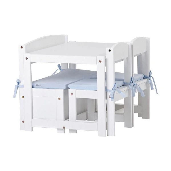 Mit der Hoppekids Kindersitzgruppe Mathilde können die Teepartys etwas größer ausfallen, hier finden schon 4 Kinder einen Platz am Tisch. Hier kann gemeinsam gebastelt, gemalt und gepuzzelt werden – und wenn Aufräumen angesagt ist, dann wandern alle Mal- und Bastelutensilien unter die Klappe der Sitzbank und die Stühle werden unter den Tisch geschoben. So schnell war noch nie aufgeräumt!