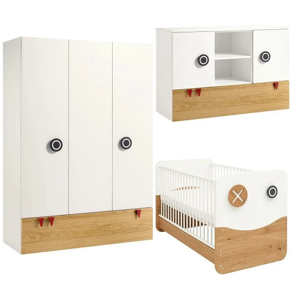 hülsta now! minimo Kinderzimmer in schneeweiß/Natureiche mit 3-türigem Kleiderschrank