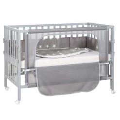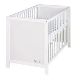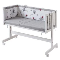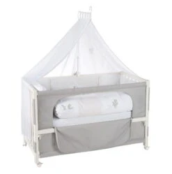 Roba Room Bed Adam & Eule, Weiß Lackiert Babybett Mit Bettwäscheset, Matratze, Himmelstange