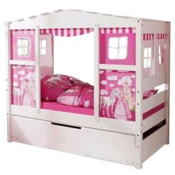 Ticaa Hausbett MINI Horse Rosa Kiefer Regalelement Massivholz – Dessin: Horse Rosa – 80 X 160 Cm
