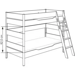 Paidi Ylvie Etagenbett 160 Cm Bettpfosten Kreideweiß/birke Schräge Leiter 90×200 Cm