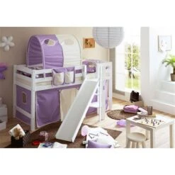 Ticaa Tino Podestbett Buche Weiß Massivholz – Vorhang-Dessin Wählbar