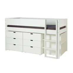 Manis-h Halbhohes Bett ARN 90×200 Cm Einfarbig Inkl. Kommoden & Regal – 20 Farben Wählbar