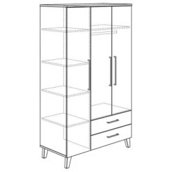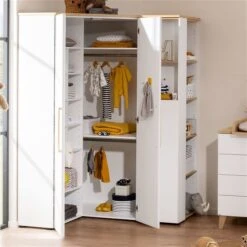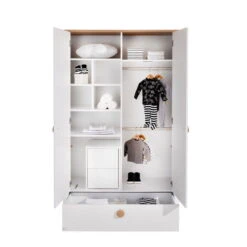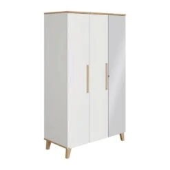 Paidi Oscar Kleiderschrank 3T 2S – 1 Spiegeltür Kreideweiß/Eiche-Nebraska – Versandkostenfrei