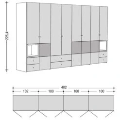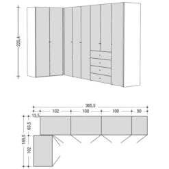 Now! Wardrobes By Hülsta Kombination 11 225,4x252x59 Cm | Lack-grau/Natureiche/Hochglanz