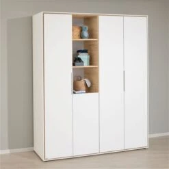 Paidi Kira Kleiderschrank 4T, 2S Eiche-Nebraska Fronten & Korpus Kreideweiß – Versandkostenfrei