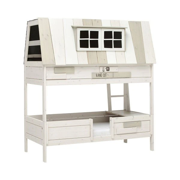 Das LIFETIME My Hangout Abenteuerbett ist aus massiver Kiefer (mit Astlöchern) hergestellt. Die Oberfläche ist mit einer Mischung aus Wachs- und Lackanteilen auf Wasserbasis sowie unter Zusatz von weißen Pigmenten behandelt worden. Die helle Struktur des Holzes bleibt sichtbar.