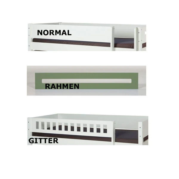 - dreiteilige Absturzsicherung (hinten, Kopf- und Fußteil) – Farbe wie Bett