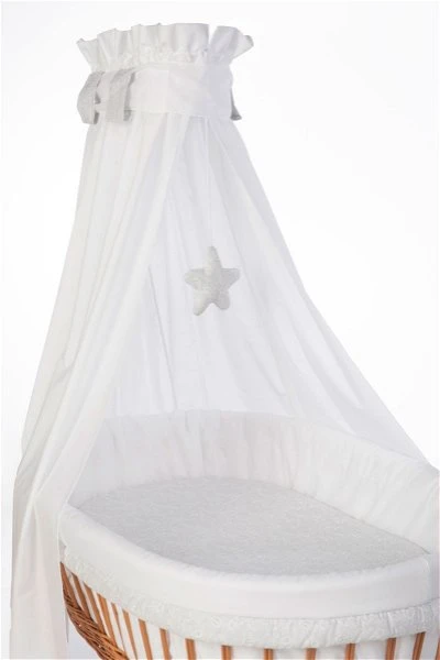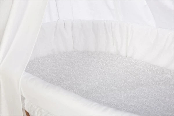 Die Kombination mit dem vollständigen textilen Set aus weicher Bio-Baumwolle gibt dem Mionido Lisa Stubenwagen ein harmonisches Design. Der fließende Stoff des Himmels sorgt für gedämpftes Licht und eine ruhige Schlafatmosphäre, die Wattierung des Polsters schützt vor dem Anstoßen.