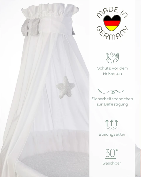 - Gesamtmaße inkl. Himmelstang: ca. 100 cm (L) x 60 cm (B) x 150 cm (H)