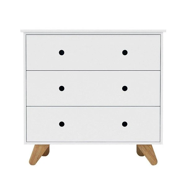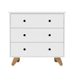 Die Nature Kid Ancona Kommode passt optimal zum Wigwambett Ancona. Das strahlende weiß mit den naturfarbenen Füßen aus massiver Kiefer macht die Kommode elegant und zeitlos. Die drei großen Schubladen bieten enorm viel Platz, sie laufen leichtgängig auf Metallschienen.
