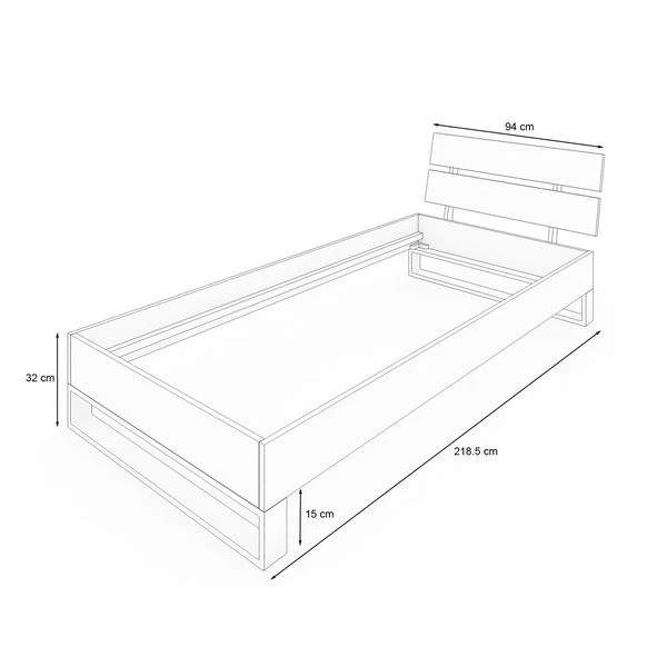 - Stellmaß: B 94 / L 214 / H 32 cm (H Ohne Kopfteil)
