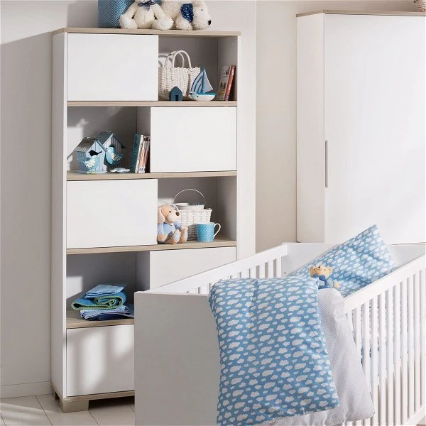 Das Paidi Carlo Regal hat einen schlichten, edlen Look. Der Ober- und Unterboden, sowie die Einlegeböden des Regals sind in Fichte-Vintage-Nachbildung gefertigt, die Schiebetüren und Seiten setzen einen Kontrast in kreideweiß. Damit ist das Regal die ideale Ergänzung zur Kinderzimmer-Serie „Carlo“.