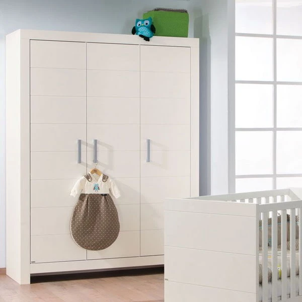 Der Paidi Fiona Kleiderschrank ist mit 3 Türen in edler Kassettenoptik ausgestattet. Der Innenraum ist durch zwei Mittelwände unterteilt. Rechts und links befinden sich jeweils 2 Einlegeböden und 1 Kleiderstange, in der Mitte befinden sich 4 Einlegeböden.