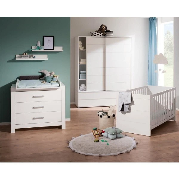 Das Paidi Fiona Kinderzimmer ist mit modernen Fronten in Kassettenoptik gestaltet. Alu-Griffe unterstreichen den schlichten, edlen Look. Absolutes Highlight des Paidi Fiona Kinderzimmers: das Gitterbett kann mit einer Wiegenfunktion ausgestattet werden, so dass sich die zusätzliche Anschaffung einer Wiege für die ersten Lebensmonate erübrigt. Dank praktischem Wiegenstopp kann die Wiegenfunktion auch schnell wieder deaktiviert werden.