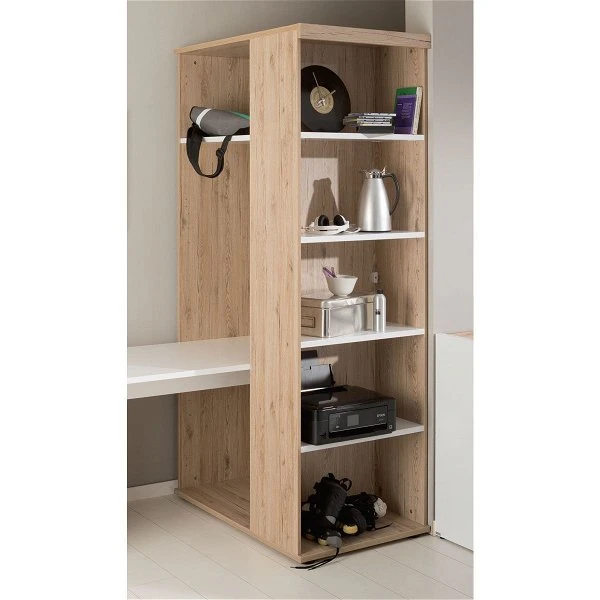 Der Paidi Fionn Basis-Funktionsschrank ist mit 2 Einlegeböden für die Längsseite, 4 Einlegeböden für die Querseite, 1 Mittelwand und 1 Kleiderstange ausgestattet. Sie können den Schrank mit Türen, zusätzlichen Einlegeböden und einem Schreibplatz erweitern