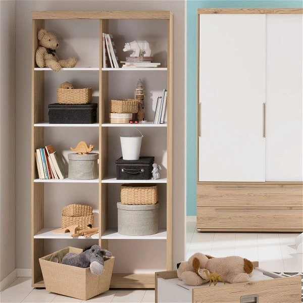 Das Regal hat 10 offene Fächer und fügt sich harmonisch in jede Wohnumgebung ein.