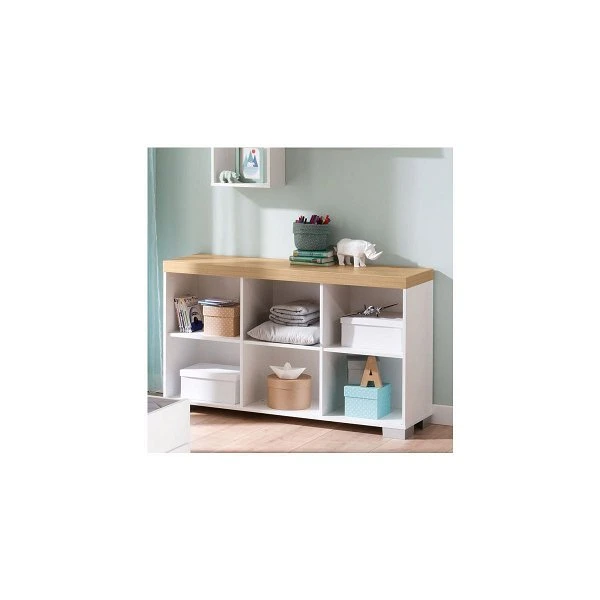 Das Paidi Kira Sideboard hat 6 offene Fächer in kreideweiß.Die 60 mm starke Deckplatte ist in Eiche-Nebraska-Nachbildung ausgeführt. Dieses Sideboard bietet Ihnen ausreichend Stauraummöglichkeiten – im Kinder- und auch im Jugendzimmer.