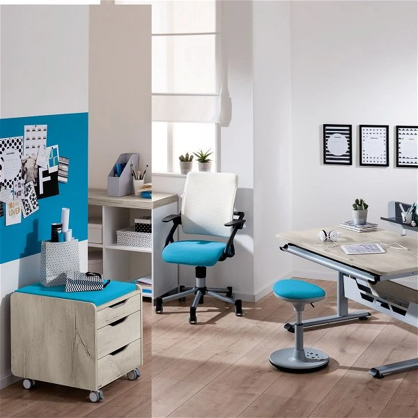 Ergänzen sie den Rollcontainer mit einem in verschiedenen Farben erhältlichen Sitzkissen und schon ist ein zweiter Sitzplatz für Freunde am Schreibtisch entstanden.