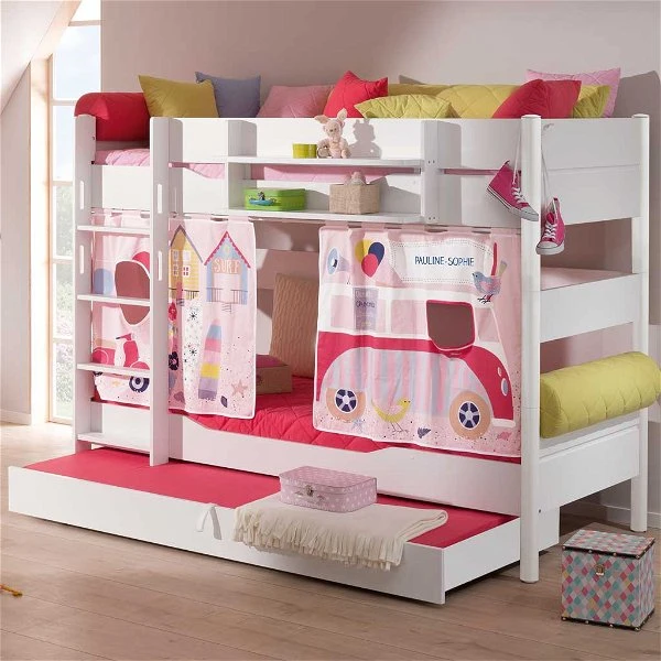 Das Paidi Ylvie Etagenbett hat offene Kopf- und Fußhäupter. Trendige Textilien in verschiedenen Styles sowie neue Zeltvarianten runden das Programm Ylvie ab.