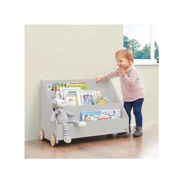 Das Pinolino Kinder-Bücherregal Lasse nimmt problemlos alle Bücherschätze auf, die Ihrem Kind gerade wichtig sind. Sie werden in den drei Fächeren übersichtlich präsentiert und sind dank der Rollen überall einsatzbereit.