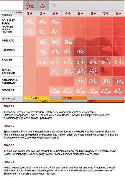 Das Puky LR Light ist ein modernes Laufrad mit leichtem Aluminium-Rahmen und Speichenlaufräder. Durch sein geringes Gewicht ist das Laufrad einfach zu bedienen und lässt sich bei Bedarf leicht tragen. Die Sicherheitsgriffe verhindern ein seitliches Abrutschen vom Lenker. Der ergonomische Sattel sorgt dafür, dass Ihr Kind nicht nach vorne rutschen kann während es schwung mit den Beinen holt. Auf die Lenkeinschlagsbegrenzung wurde bei den Laufrädern bewusst drauf verzichtet, denn so kann sich der Lenker bei einem Sturz flach auf den Boden legen und verringert das Verletzungsrisiko.