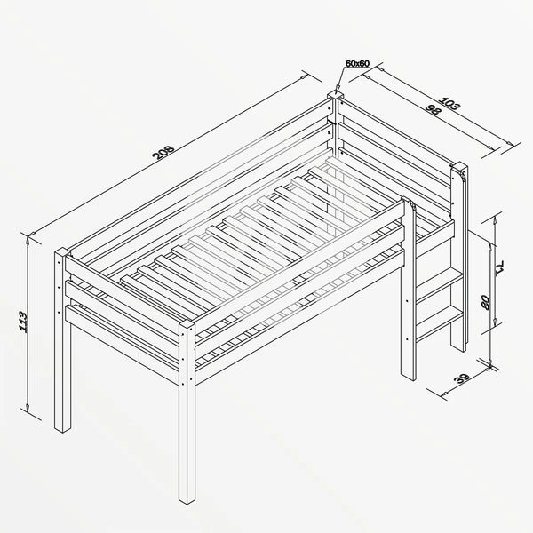 - Halbhochbett ALEX aus massiver Buche, klar lackiert