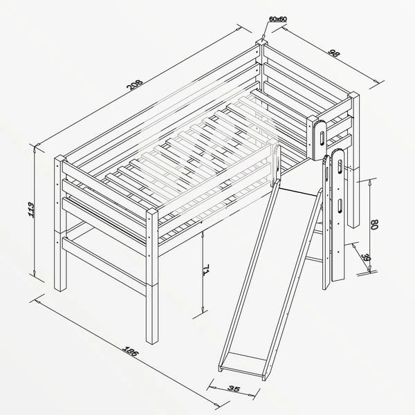 - Spielbett ELIYAS aus massiver Buche, klar lackiert