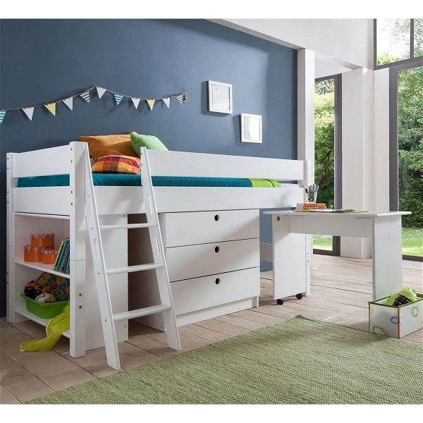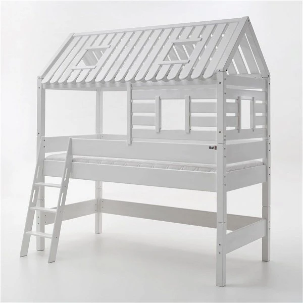 - Halbhochbett KIM aus massiver Buche, weiß lackiert