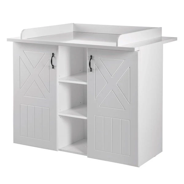 Die Wickelkommode Constantin ist mit 2 Türen und 3 offenen Fächern ausgestattet. Sie wird inklusive Wickelansatz, der jederzeit an die Kommode angesetzt und auch abgenommen werden kann, geliefert.