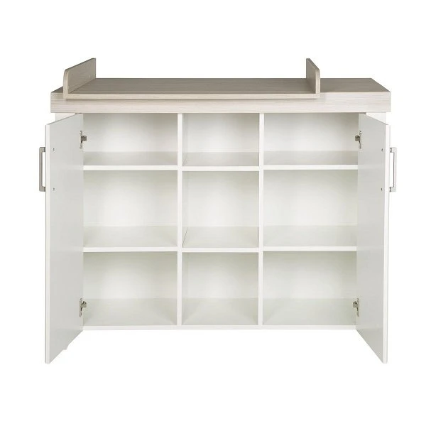 Die Wickelkommode Felicia ist mit 2 Türen und 3 offenen Fächern ausgestattet. Sie wird inklusive Wickelansatz, der jederzeit an die Kommode angesetzt und auch abgenommen werden kann, geliefert.