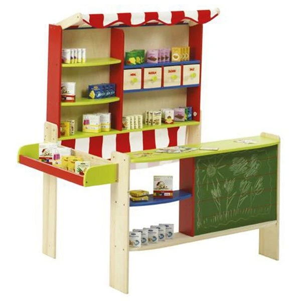 Der Roba Kaufladen verfügt über ein umfangreiches Zubehörset und ist inklusive Kasse. So hat Ihr Kind bereits alles um mit dem Verkaufen loszulegen. Der Kaufmannsladen ist auf kindgerechter Höhe und verfügt über eine zusätzliche seitliche Ablage. Die 4 Schubladen und die Regalfächer bieten Stauraum für die vielen Verkaufsartikel. Das Kaufladenzubehör umfasst u. a. eine elektronische Kasse mit Lautsprecher, Mikrofon und Scanner sowie Bargeld, Geldkarte und kleinem Einkaufskorb.