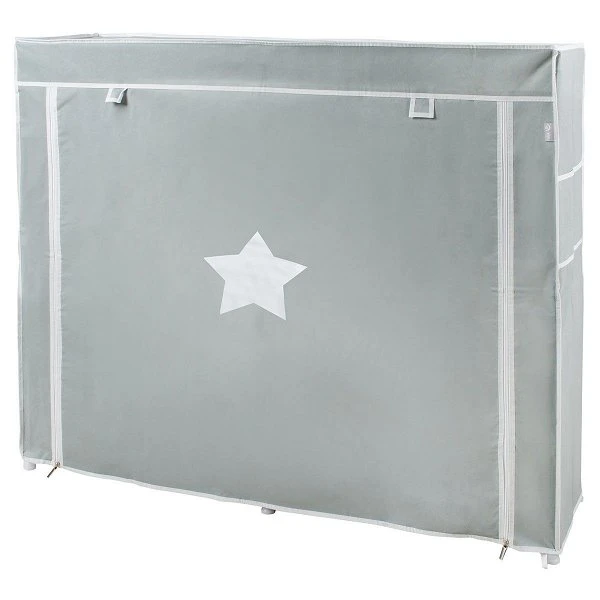 Der Roba Little Stars Aufbewahrungsschrank ist ein praktischer Stoffschrank den man einfach zusammen stecken kann. Dank seinem zeitlosem Design fügt er sich dezent in jedes Zimmer ein. Er bietet die Möglichkeit Spielzeug, Schuhe oder Kleidung sicher aufzubewahren. Die Fächer sind wasserabweisend und der Schrank ist schadstoffgeprüft. Die Stoff-Tür lässt sich mit einem Reißverschluss verschließen und kann geöffnet oben am Schrank aufgerollt und mit Klettverschlüssen fixiert werden. Das Stecksystem ermöglich einen Aufbau ohne Werkzeug.
